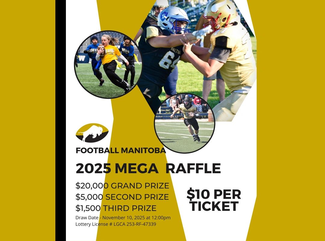 🎉 Help us raise funds for equipment, jerseys, and field requirements by purchasing a ticket to the 2025 Football Manitoba Mega Raffle. For just $10, you will be entered to win up to $20,000 - and every ticket supports the Sunrise Coyotes Football Club.